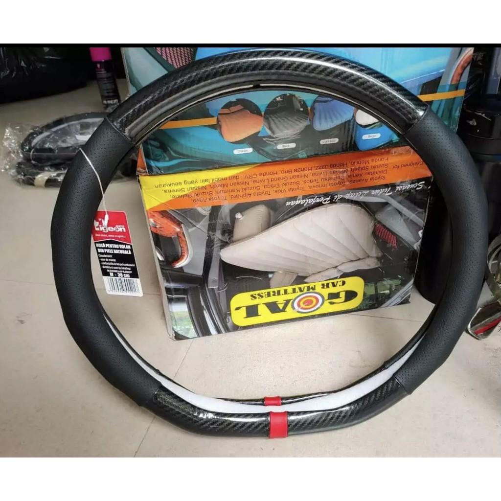 Bọc vô lăng cacbon D cut phối da thoàng khí