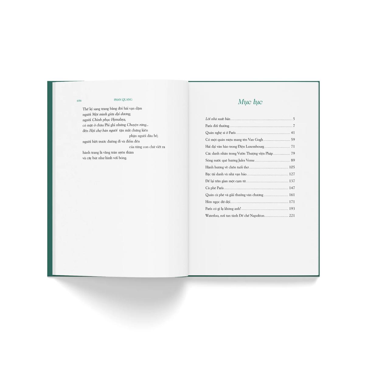 Tuyển tập sẽ đưa bạn đọc đi qua các nước và châu lục theo trình tự: từ Pháp, Bỉ, châu Âu, châu Mỹ, châu Phi, châu Úc, châu Á và kết thúc ở Trung Quốc. Khép lại tuyển tập là phần Phụ lục chọn trích cảm nhận của một số độc giả về Du ký của Phan Quang, đã đăng báo, in sách, có ghi rõ xuất xứ và thời điểm, cùng hai bài thơ do hai người bạn vong niên của tác giả sáng tác nhân dịp mừng tác giả đạt tuổi 90.