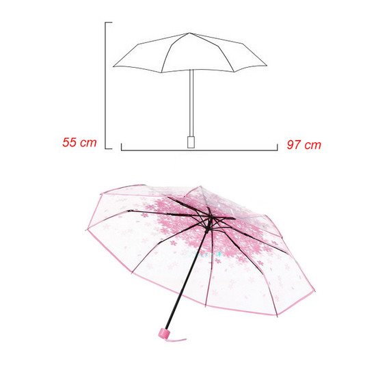 - Dù xếp trong suốt hoa anh đào V.2 không chỉ là một vật dụng để che mưa, chiếc dù còn là một phụ kiện thời trang, giúp tôn lên vẻ dịu dàng, nữ tính