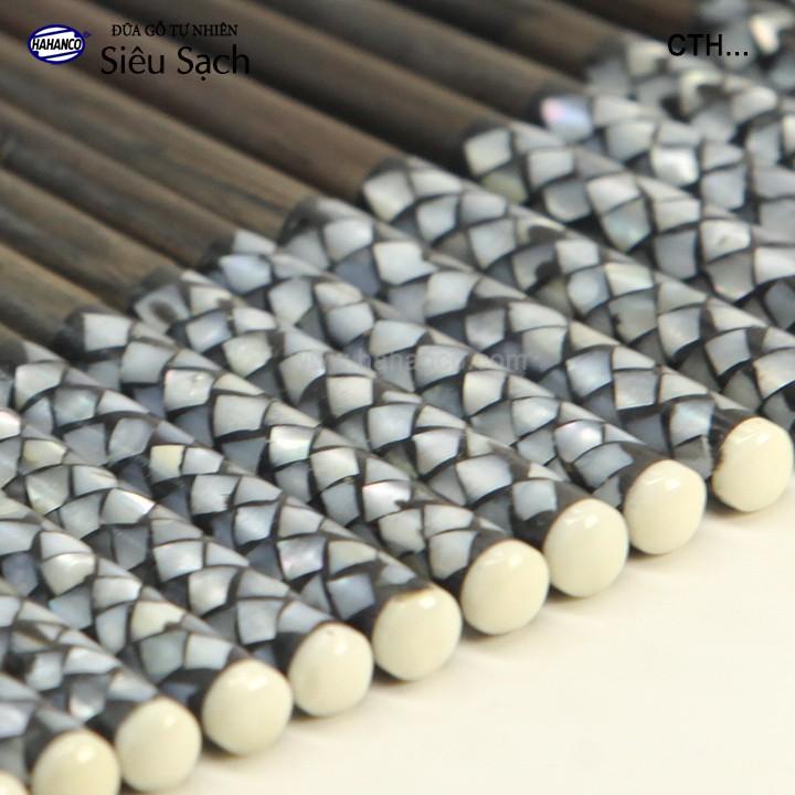Đũa gỗ tự nhiên siêu sạch xuất Hàn Quốc - Gỗ mun sọc khảm xà cừ.