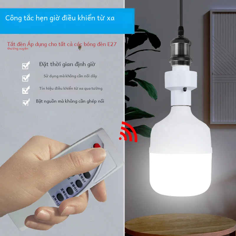 ✨Đui đèn điều khiển từ xa không dây E27 Chức năng hẹn giờ - Điều khiển đèn từ xa