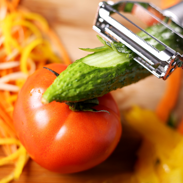 Nâng cao quá trình chuẩn bị lột da của bạn. Dụng cụ gọt vỏ nhiều lưỡi, hai trong một của chúng tôi cung cấp cả lưỡi thẳng và lưỡi Julienne mà bạn chỉ cần chọn