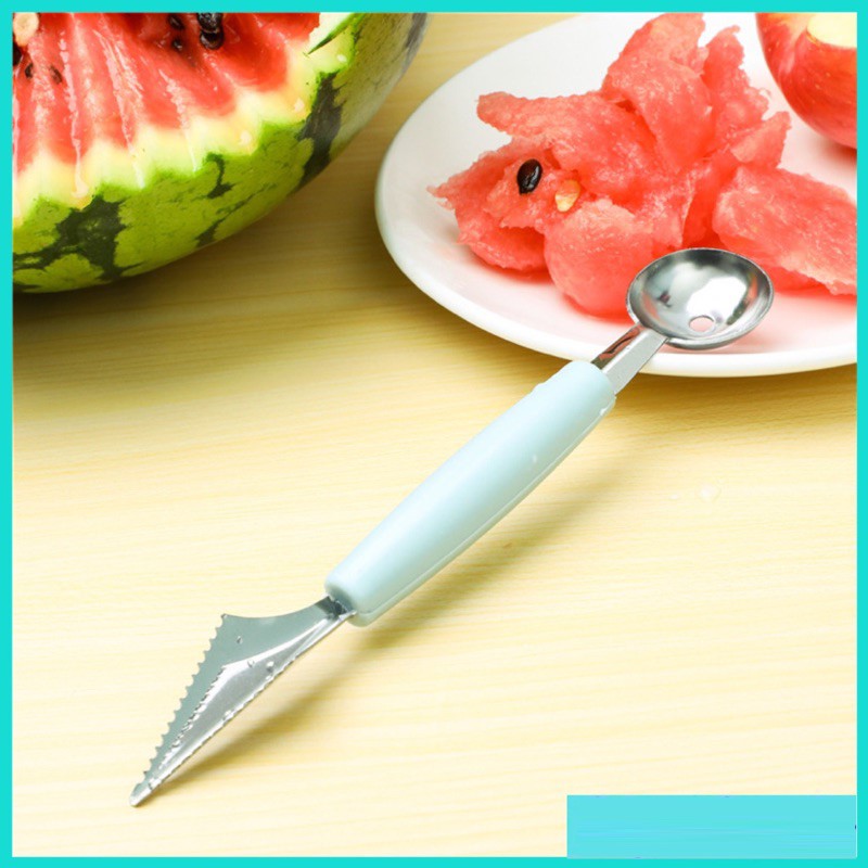 Dụng cụ dao thìa muỗng tròn cắt, tỉa khắc, múc,nạo tạo hình trái cây hoa quả 2 đầu innox tiện lợi