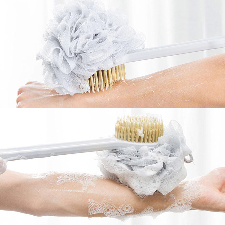 Cây Cọ Lưng 2 Mặt Massage Tắm, Bông Tắm Tay Cầm Dài Kì Lưng