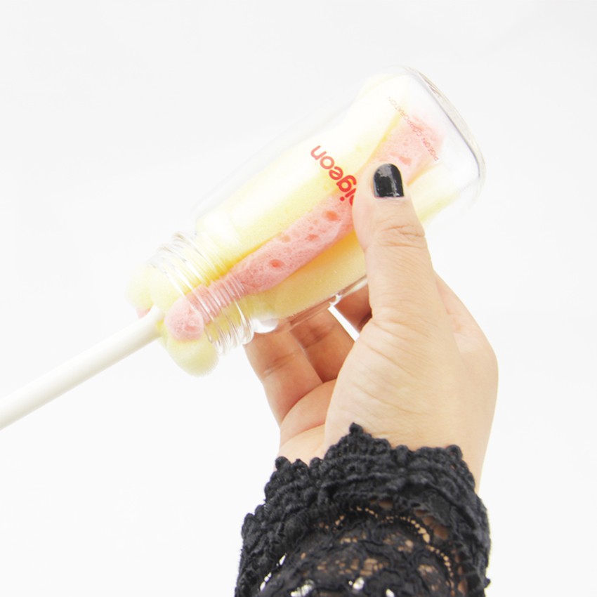 - Công dụng: Dụng cụ cọ rửa bình sữa với đầu mút cao cấp, mềm mại và an toàn không gây xước bình. Chất liệu mút mềm giúp làm sạch nhẹ nhàng các vật dụng như cốc chai, lọ, bình mà không gây trầy xướ rất tiện sử dụng cho cả gia đình. HDSD :