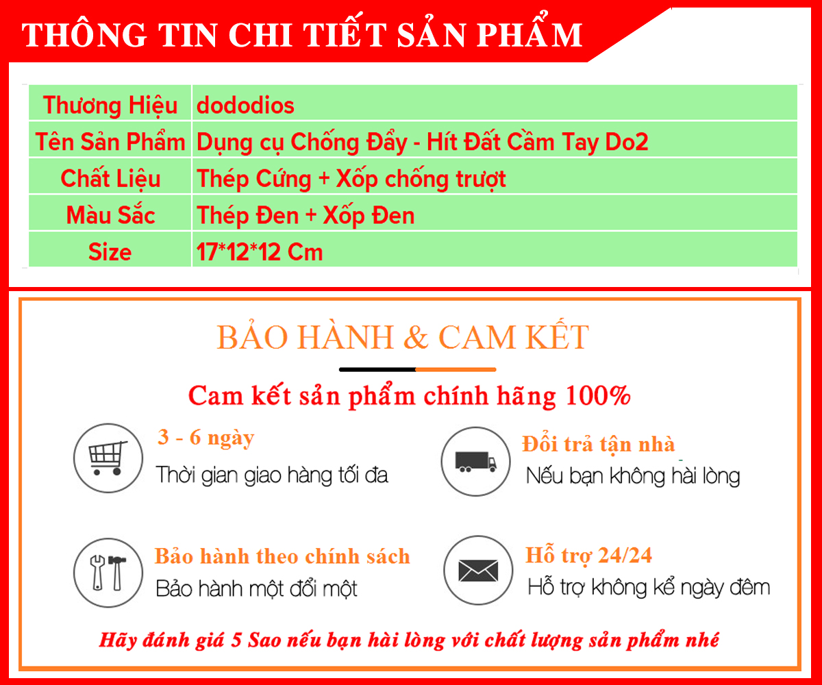 1.CÁC THÔNG SỐ KỸ THUẬT CỦA BỘ DỤNG CỤ CHỐNG ĐẨY ĐA NĂNG 3 TRONG 1. - Thương hiệu: Đại Nam Sport. - Xuất xứ: Trung Quốc. - Kích thước: D x R x C=