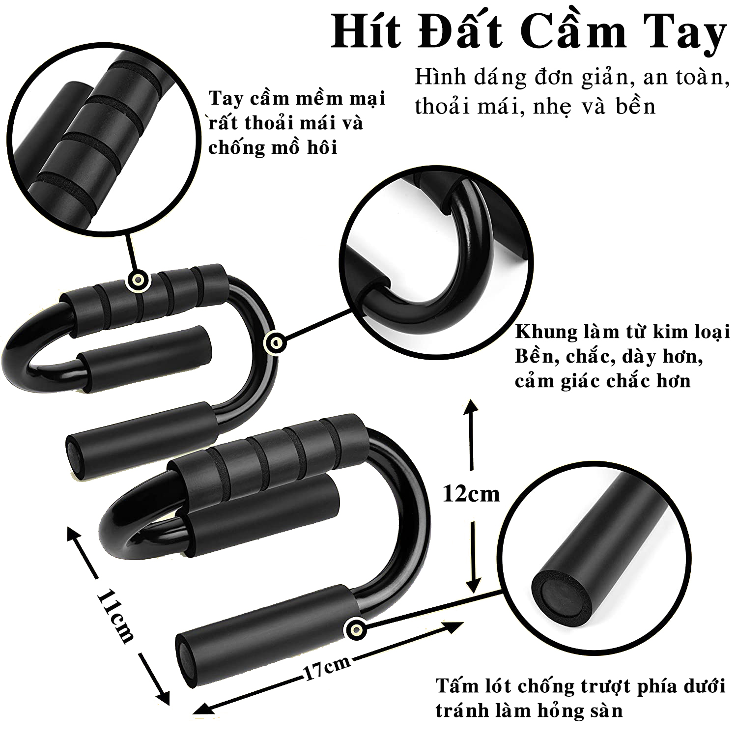 Chi Tiết Sản Phẩm: - Dụng cụ tập hít đất chuyên dụng cho bài tập chống đẩy (hít đất) luyện tập các cơ 1 cách hiệu quả và đúng cách. - Sản phẩm được các