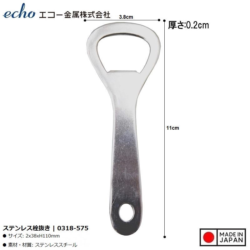 Dụng cụ mở bia, nước ngọt bằng thép Echo 110mm ■ Xuất xứ: Nhật Bản | MADE IN JAPAN ■ NSX: Echo Metal Co., Ltd (Japan) ■ Kích thước:2 x 38 x 110mm ■ Màu sắc: Màu trắng ■