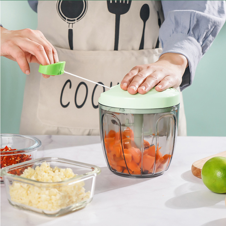 Cắt, xay nhuyễn đối với các loại hành tỏi, ớt , rau, thảo mộc, hành tây, các loại hạt...bằng tay chỉ với thao tác kéo dây cắt cực dễ và tiện Các mẹ làm đồ