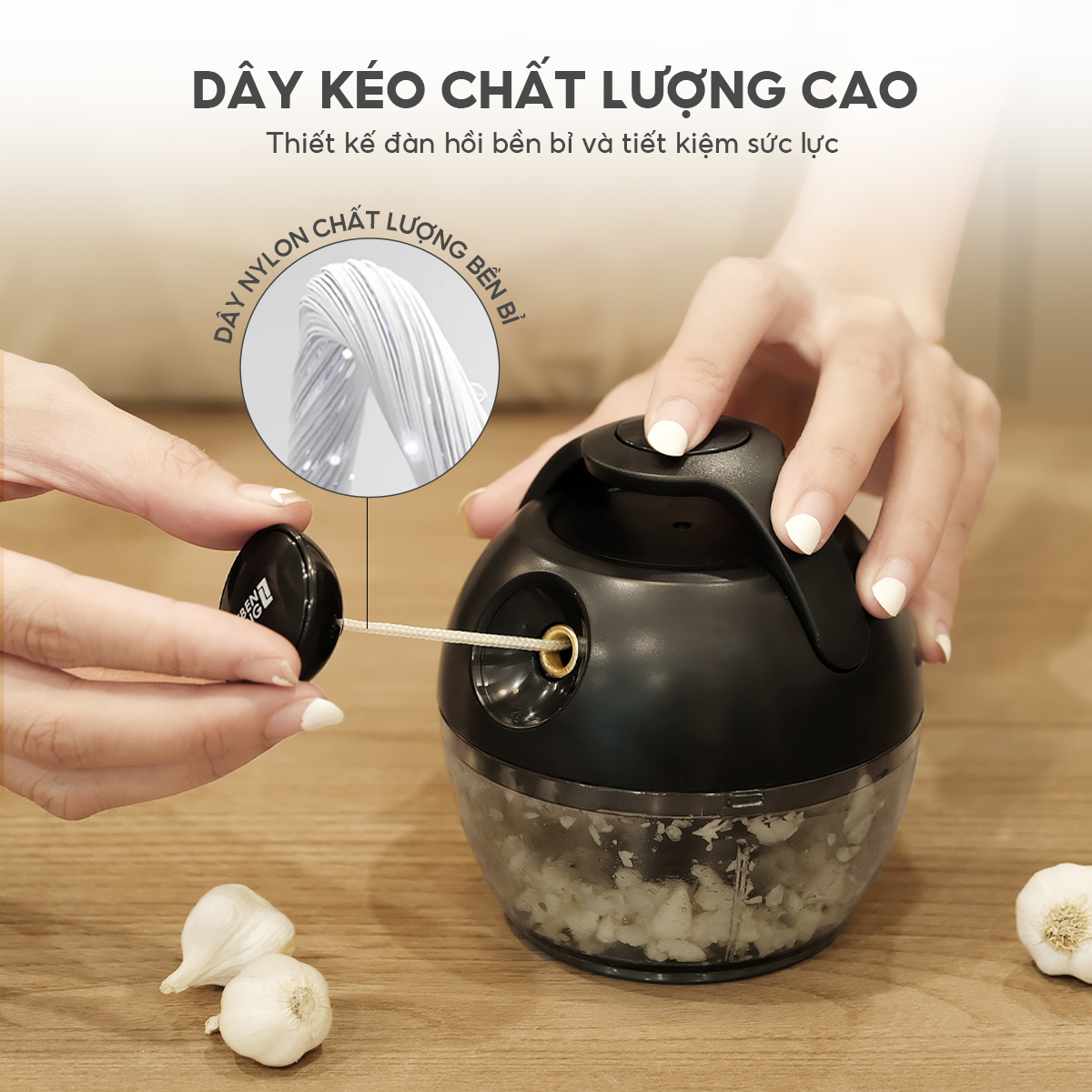 Cắt, xay nhuyễn đối với các loại hành tỏi, ớt , rau, thảo mộc, hành tây, các loại hạt...bằng tay chỉ với thao tác kéo dây cắt cực dễ và tiện Các mẹ làm đồ
