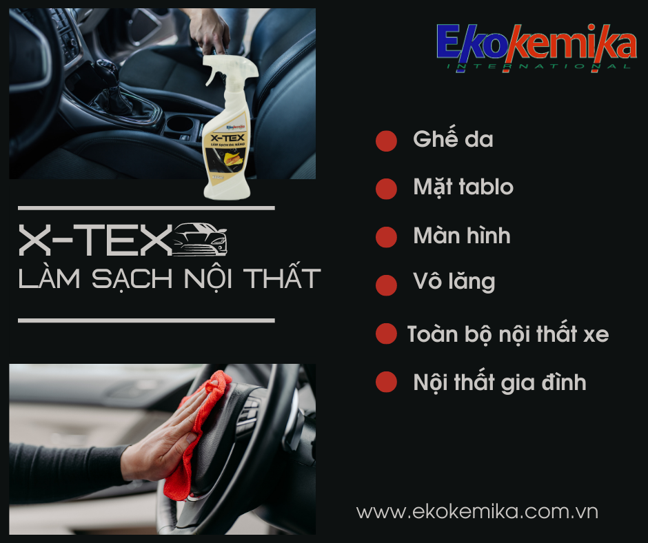 Khám phá Sức Mạnh Dùng Dịch Làm Sạch Nội Thất Xe Hơi Đa Năng X-Tex 600ml từ Thương Hiệu Đẳng Cấp Ekokemika Nhập khẩu từ thương hiệu nổi tiếng toàn cầu Ekokemika, dung dịch làm