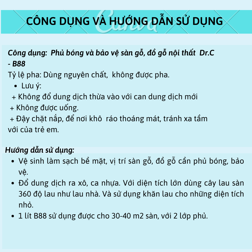 Dr.C B88 Dung Dịch Phủ Bóng, Phục Hồi Độ Bóng, Tạo Lớp Bảo Vệ Sàn, Chống Trơn Trượt Sàn Gỗ