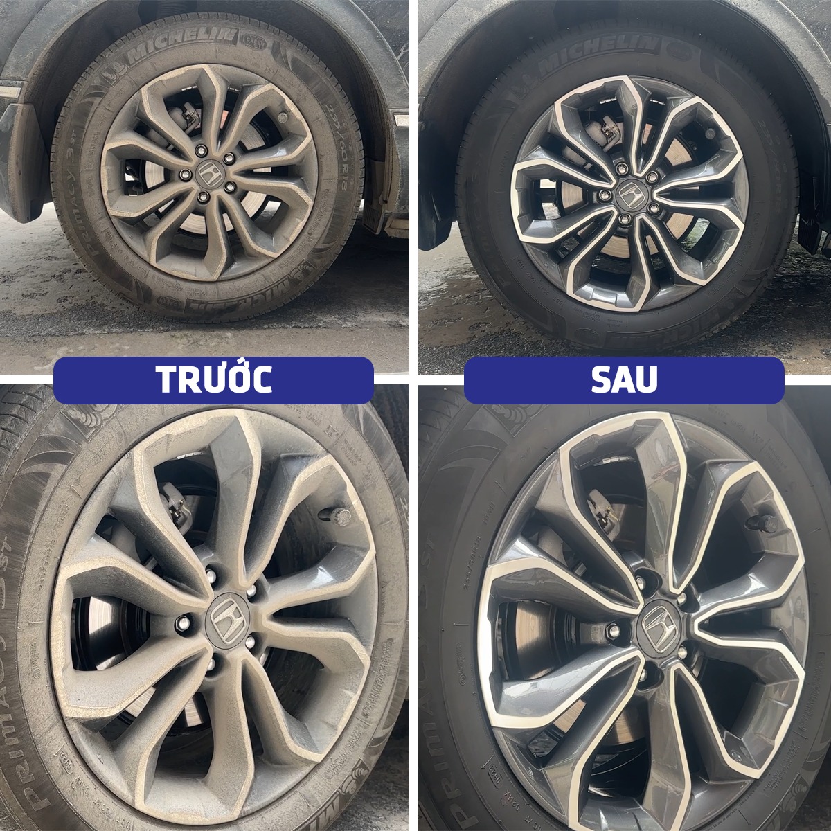 Quét hoặc xịt dưỡng lốp Black brill để bảo dưỡng và làm đen lốp.