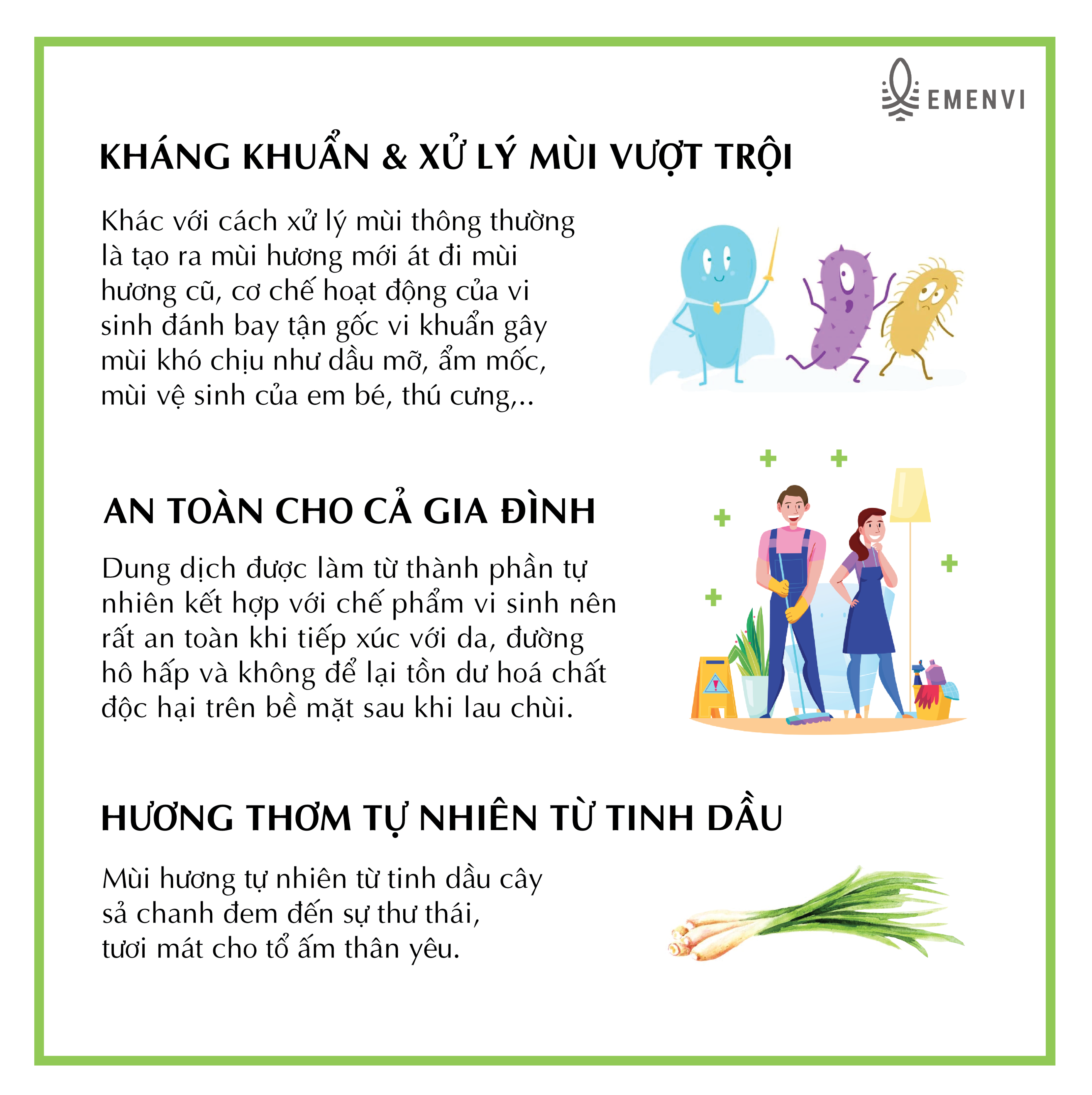 1. Không chỉ giúp lau nhà sạch hiệu quả, mà còn giúp thanh lọc không gian sống với hương thơm thiên nhiên 2. Chứa tinh dầu thảo mộc, đem lại hương thơm thư thái, dễ