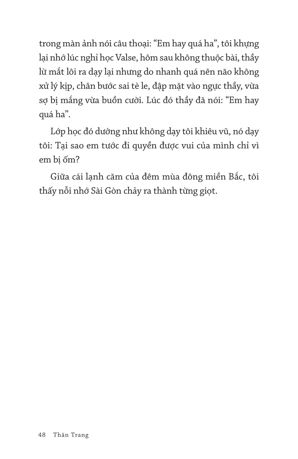 “Bạn thông minh và tài giỏi ở đâu nếu không giúp được chính mình? Bệnh tật là vị khách không mời mà đến, đến rồi không định đi. Tôi không hề biết, cuộc sống của mình sắp không bao giờ còn như cũ nữa.” (Thân Trang)