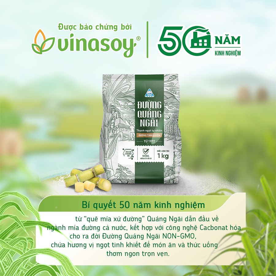 Mua tại Tiktok- Đường tinh luyện Quảng Ngãi khởi nguồn từ "cái nôi của mía đường" Quảng Ngãi, trong suốt 50 năm qua, trên vùng nguyên liệu mía Tây Nguyên trù phú, mọi tinh túy ngọt ngào từ tự nhiên đã được chắt lọc và tiếp nối để kết tinh thành những hạt đường Quảng Ngãi "thanh ngọt tự nhiên".