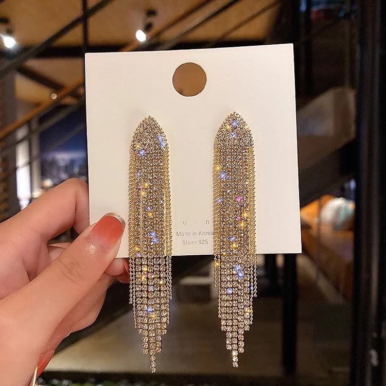 ✨Earrings nữ dáng dài gắn đá lấp lánh sành điệu