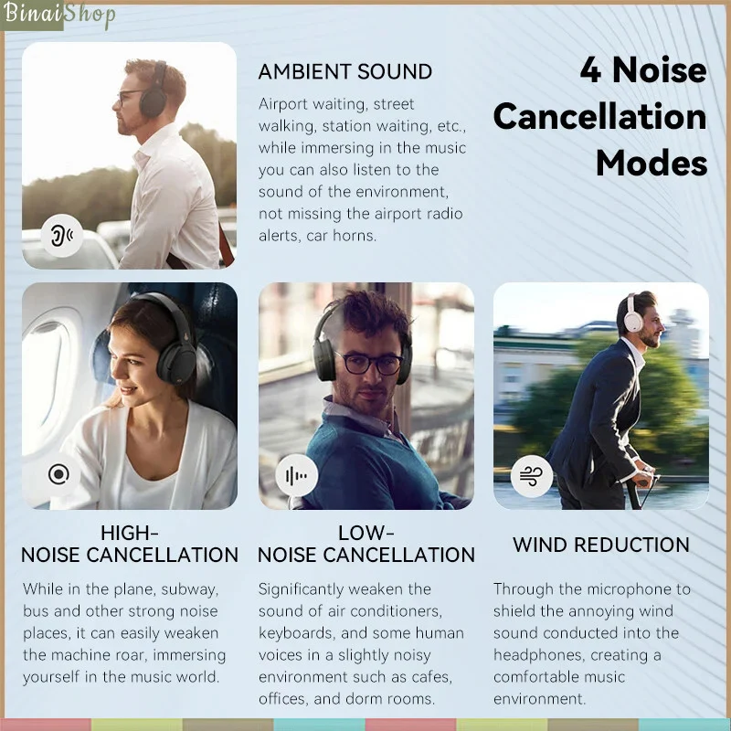 Công nghệ âm thanh Chống ồn chủ động ANC Điểu chỉnh 9 chế độ EQs Micro: Có Loa: Màng loa: 40mm Tính năng: Chống ồn, Điều khiển giọng nói, Xuyên âm, Có mic đàm thoại