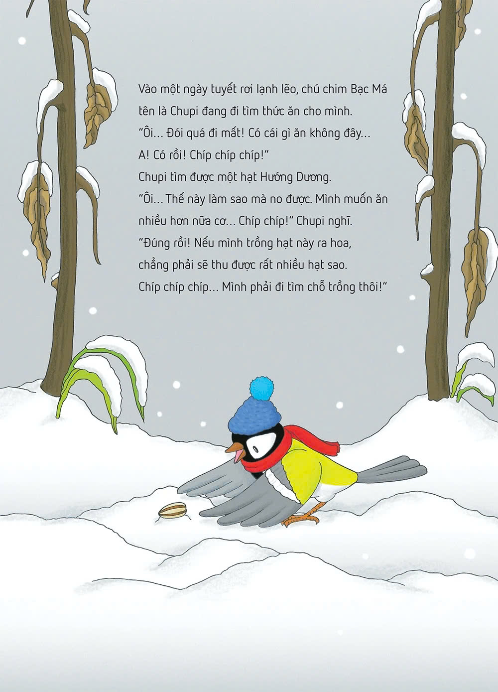 Vào một ngày tuyết rơi lạnh lẽo, chú chim Bạc Má Chupi đang đi tìm thức ăn cho mình và chú đã tìm được một hạt hướng dương. Nhưng vì muốn ăn nhiều hướng dương hơn, nên chú quyết định phải trồng hạt hướng dương này thành cây to lớn. Thế nhưng, những nơi chú bay qua chỉ toàn là tuyết trắng xóa, không biết phải trồng hạt hướng dương ở đâu cả. Và rồi, nhờ có những bạn tuyết, Chupi đã bắt đầu hành trình đi tìm nơi trồng hạt hướng dương bằng cách đi lên tòa nhà 100 tầng trên bầu trời. Liệu Chupi có tìm được nơi trồng hạt hướng dương như mong muốn và chú sẽ trải qua những gì trong tòa nhà 100 tầng trên bầu trời nhỉ, các bé hãy đón đọc cuốn Ehon Nhật Bản “Tòa nhà 100 tầng trên bầu trời” để tìm ra câu trả lời nhé. Sách dành cho các bạn nhỏ từ 3- 8 tuổi với rất nhiều kiến thức bổ ích và những khám phá bất ngờ.