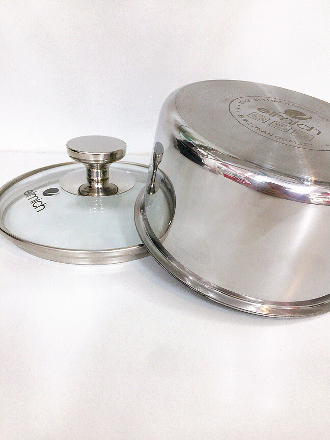 Vung kính cường lực kết hợp inox đẹp mắt: Phần kính cường lực chịu nhiệt, chịu lực dày 4mm giúp bạn dễ dàng quan sát thực phẩm khi nấu trong khi phần viền inox 304 đánh bóng gương giúp tối ưu quá trình vệ sinh, đem đến độ bền bỉ tốt hơn hẳn các loại vung khác.
