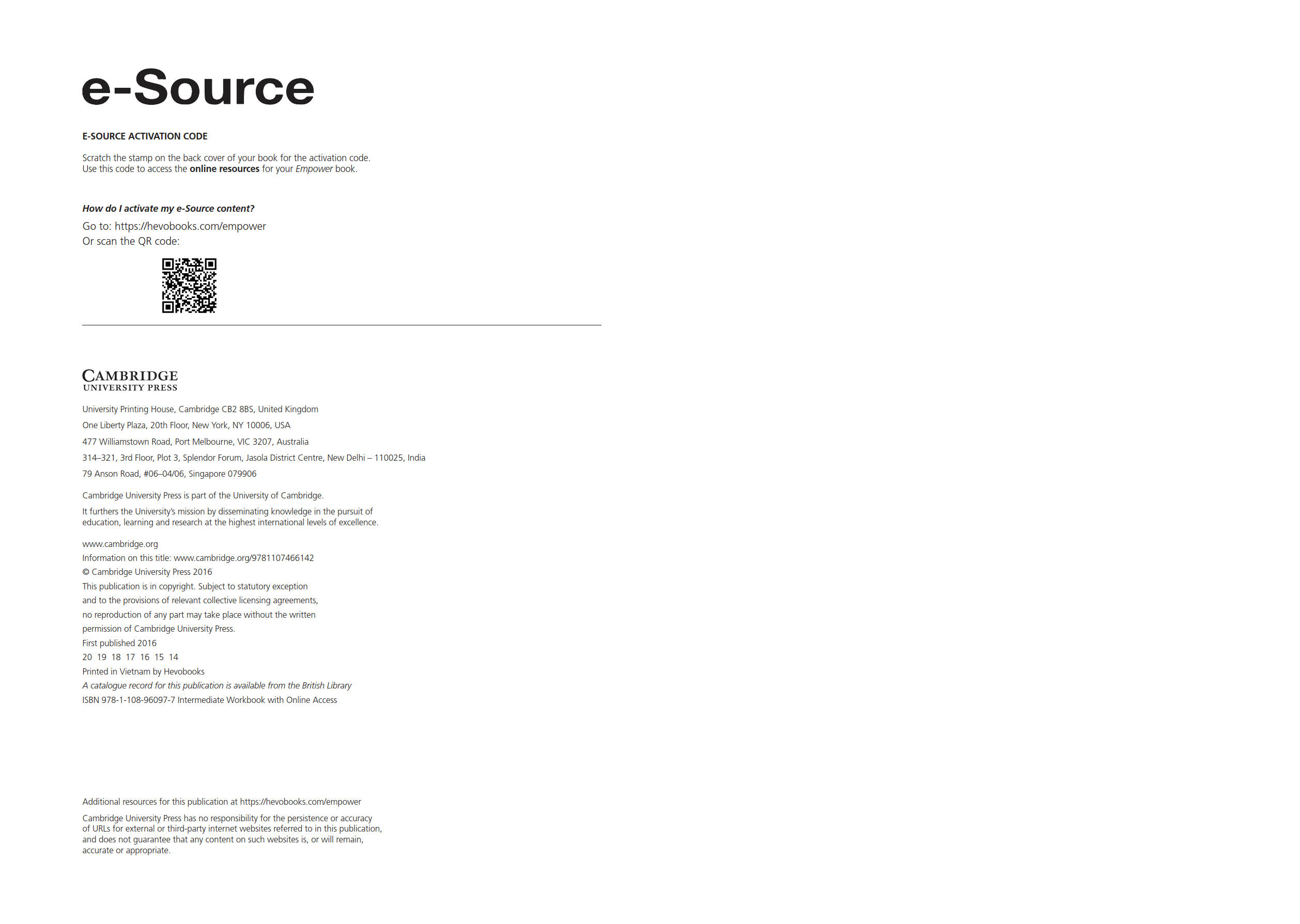 Mua tại TiktokTên đề tài: Empower B1+ Intermediate Workbook with Online Access Tác giả: Cambridge . Peter Anderson Khổ sách: 21 x 29.7 Năm xuất bản: 2020 Đơn vị phát hành: Công ty CP Sách Đại học - Dạy nghề Nhà xuất bản: NXBGDVN