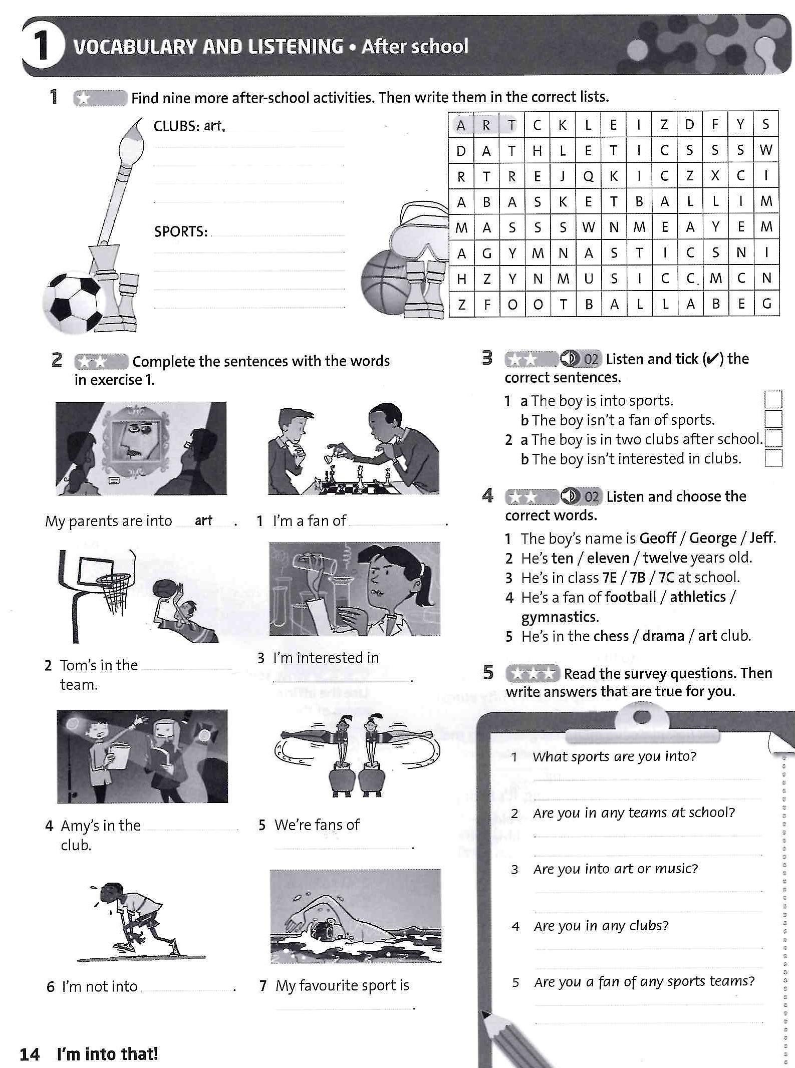 The Workbook includes exercises in grammar, vocabulary and skills, which mirror the language and skills work in the Student's Book pages.