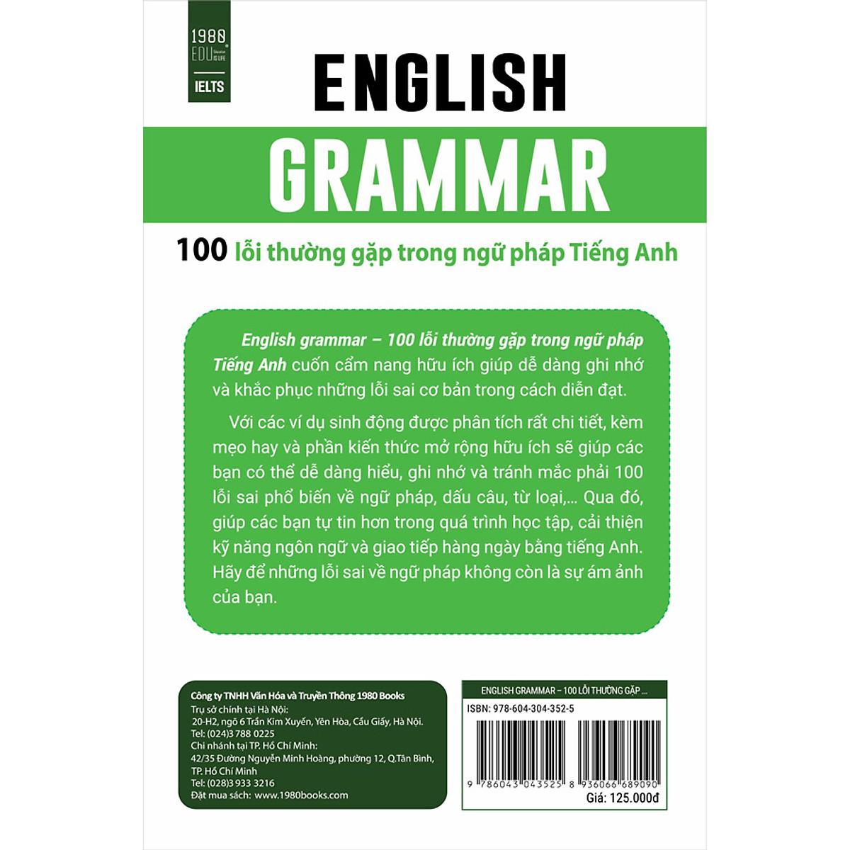 ENGLISH GRAMMAR - 100 lỗi thường gặp trong ngữ pháp Tiếng Anh là một cuốn cẩm nang hữu ích trong việc sử dụng ngữ pháp tiếng Anh.