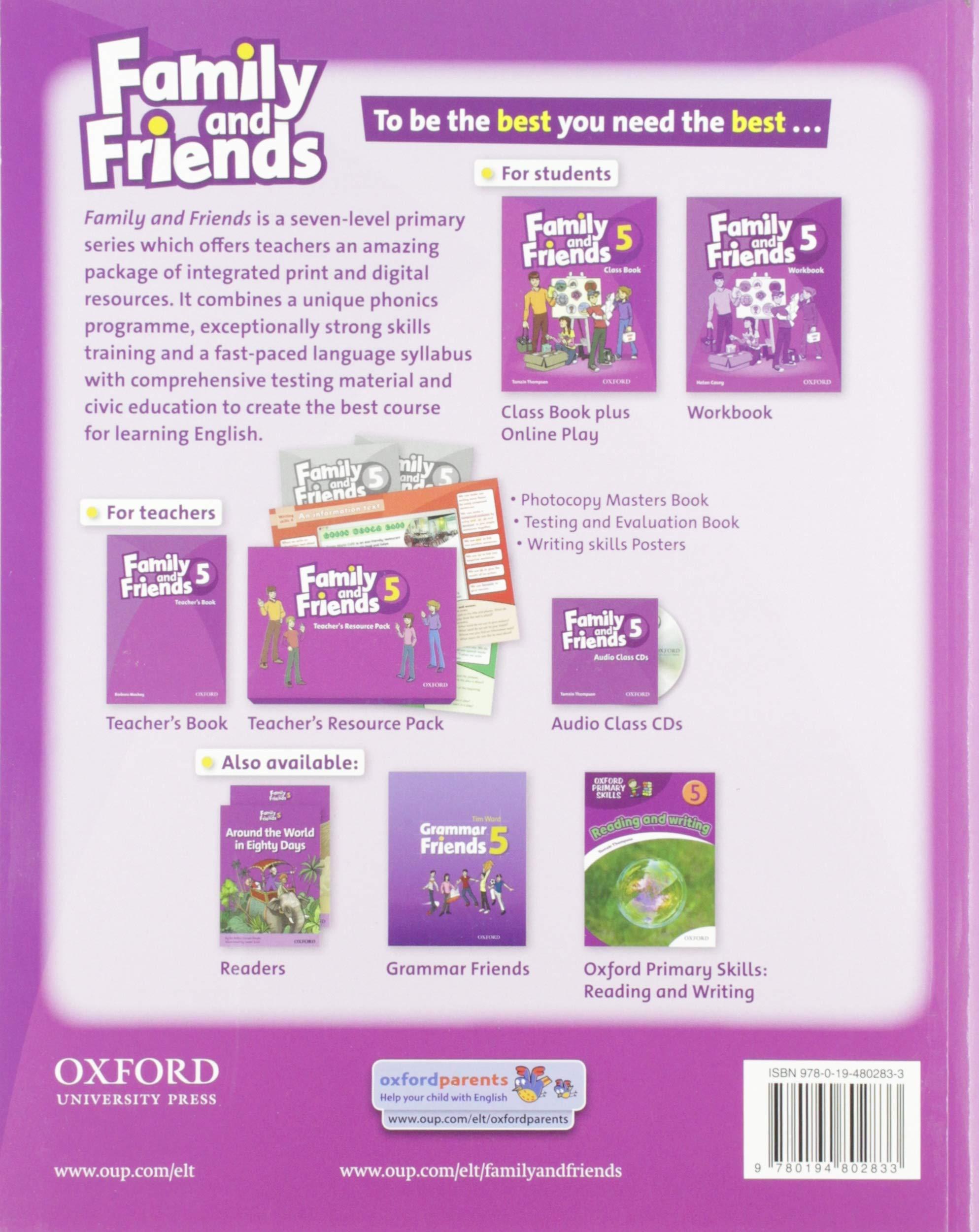 Family and Friends offers a carefully graded approach to reading, writing and literacy skills in English to young learners. No other course offers you the same benefits as Family and Friends. The exceptionally strong skills