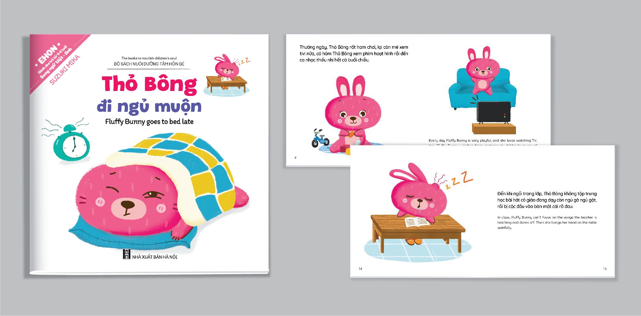 Mua tại TiktokBộ Ehon kĩ năng sống Thỏ Bông (song ngữ Việt Anh) 10 quyển (Quét mã QR file nghe) Với những câu chuyện giáo dục kĩ năng sống cho trẻ trong cuộc sống hàng ngày. Nội dung đơn giản, dễ hiểu, đồng thời ẩn chứa những bài học, lời khuyên nhủ yêu thương của bố mẹ dành cho con khi con sợ đau, lười học, lười ăn, đi ngủ muộn... Những lời động viên, khuyên bảo con một cách nhẹ nhàng để con hiểu và tự giác hơn, giúp con ngoan ngoãn, tự lập hơn trong cuộc sống. Trọn bộ gồm 10 quyển: