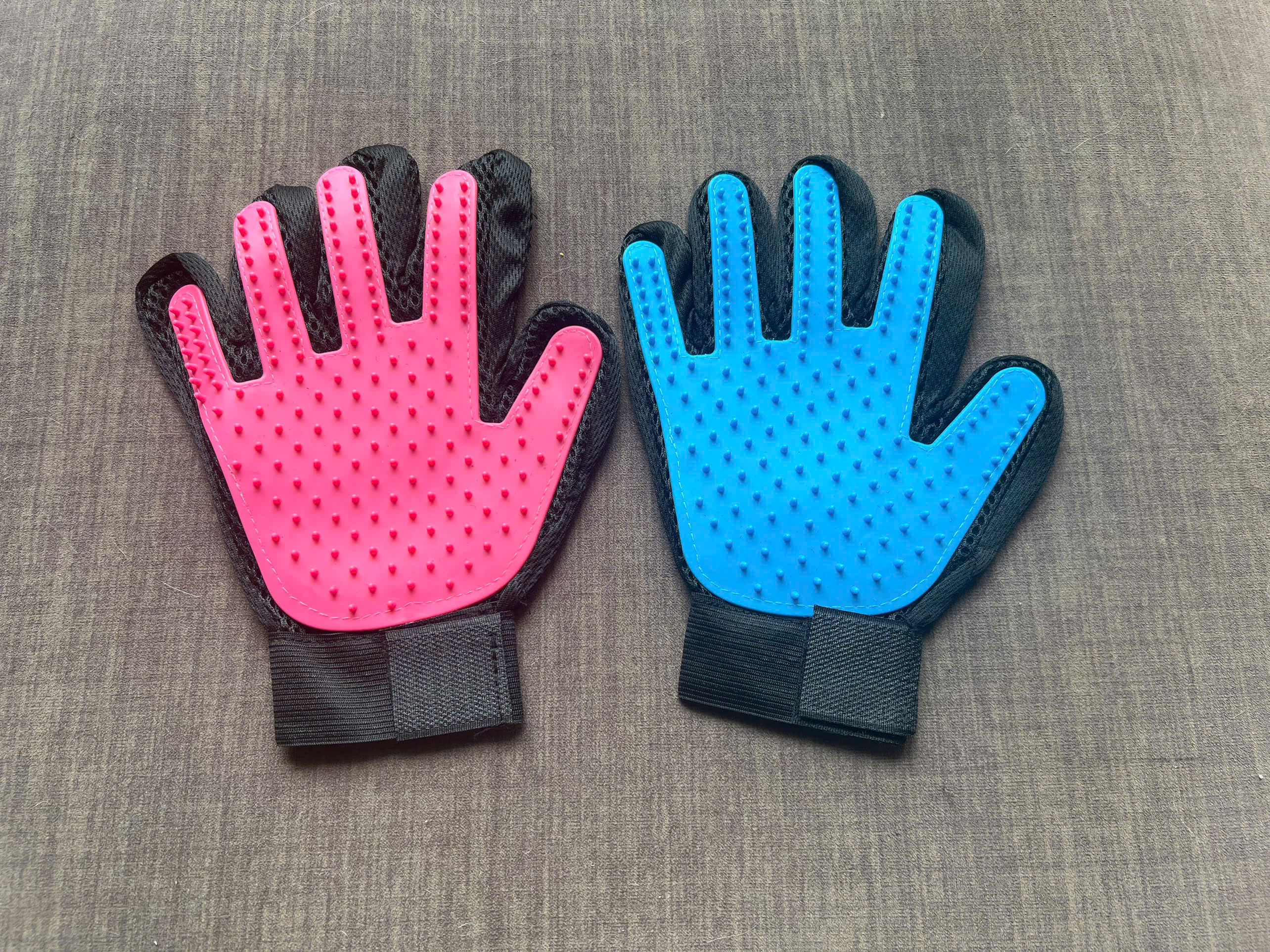 GĂNG TAY CAO SU LẤY LÔNG RỤNG CHẢI LÔNG MASSAGE CHO THÚ CƯNG CHÓ MÈO 1. Thiết kế : Găng tay lấy lông cho chó mèo cưng 2. Màu sắc : Hồng, xanh dương 3.