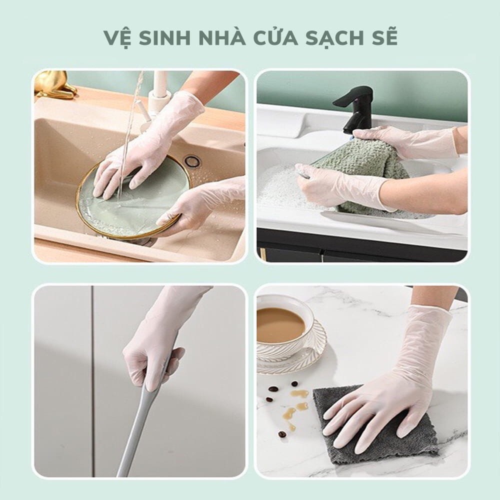 Găng tay cao su siêu dai làm bếp nấu ăn rửa chén, hộp 30 bao tay nhà bếp đa năng tái sử dụng nhiều lần