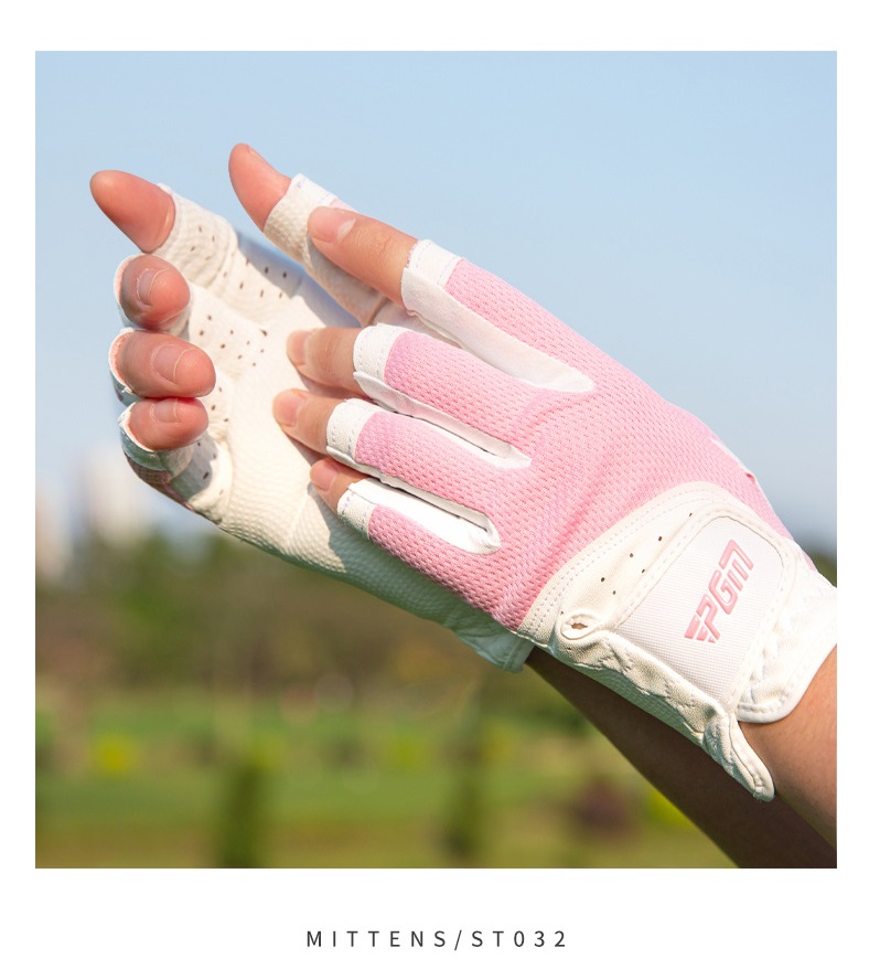 Thương hiệu : PGM Mô tả sản phẩm ST032 là mẫu găng mới của năm 2023 với thiết kế hở ngón thời trang và chất liệu lưới thoáng mát. - Màu sắc: Trắng hồng, trắng