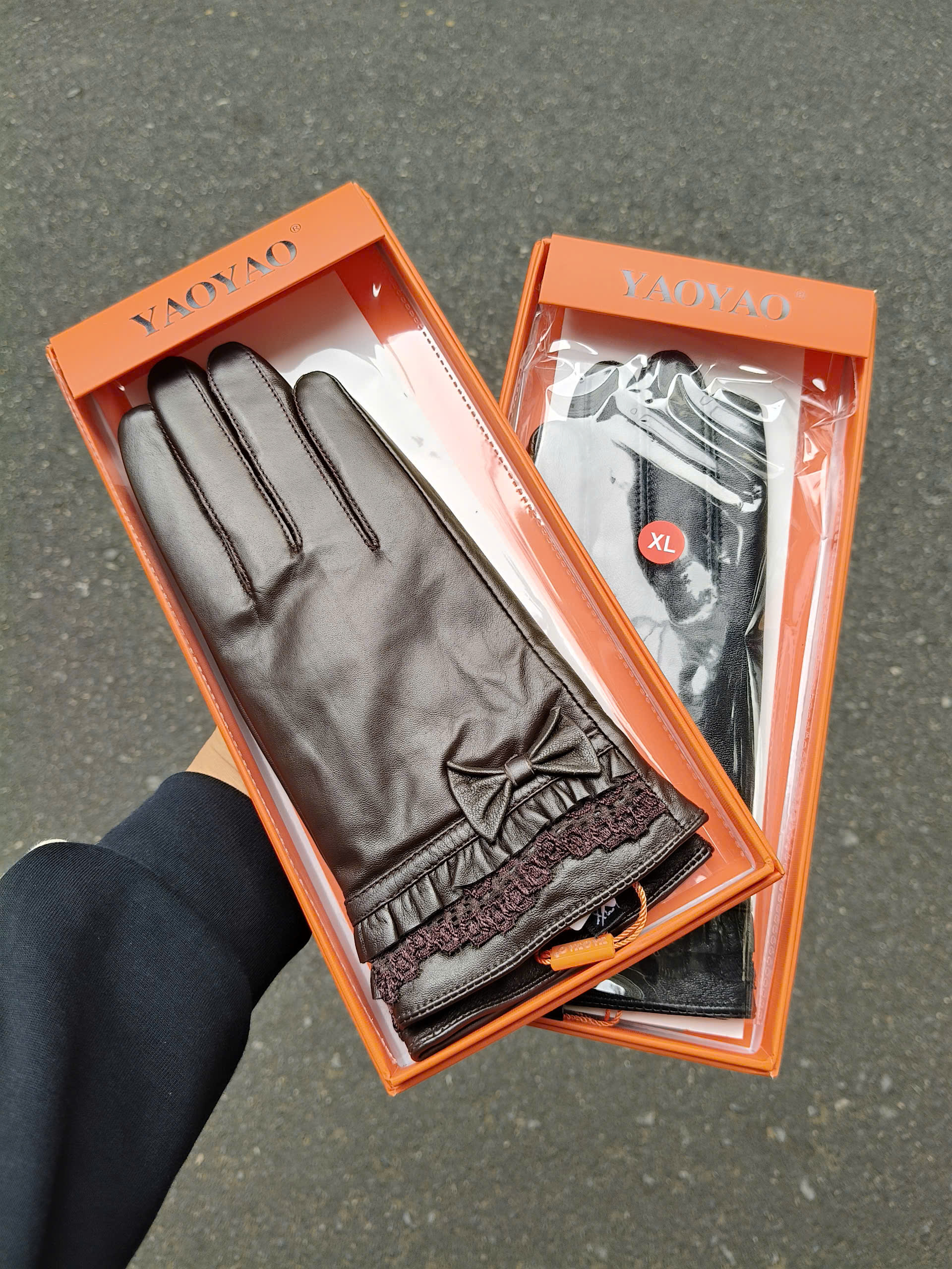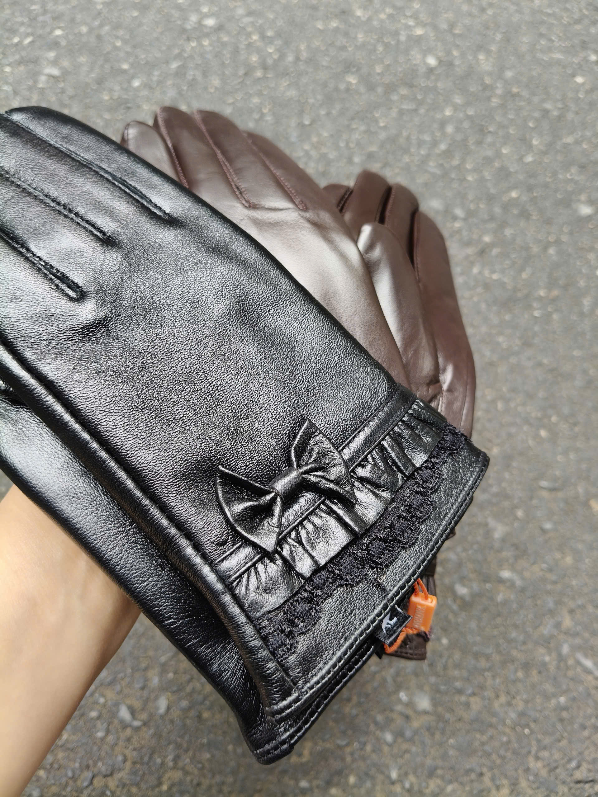 Găng tay da cừu nữ đính nơ - BH8738 màu Cà phê. Lót lông siêu ấm. Size M L