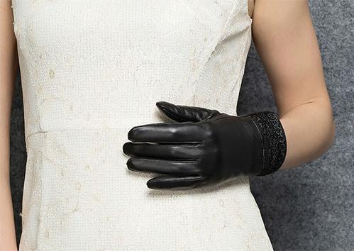 Găng tay nữ da cừu phối lông BHY5608 Lót lông siêu ấm, size M L XL
