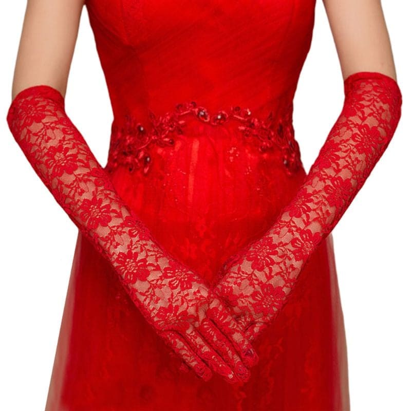 Độ dài: dài ngang khuỷu tay: 39 cm Màu sắc: đỏ Thích hợp cho phục trang cô dâu, cho phụ nữ đi tiệc, dạ hội, sự kiện.