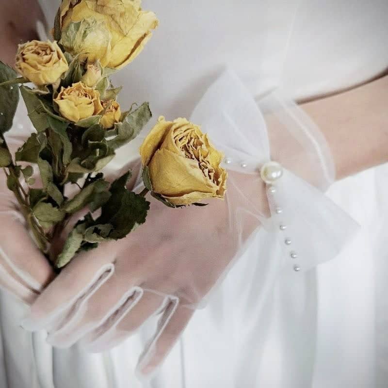 ✨Găng tay trong suốt đính nơ xinh xắn cho Cô dâu và Dạ hội, đi tiệc, sự kiện, lễ hội, chụp ảnh MS: 44037