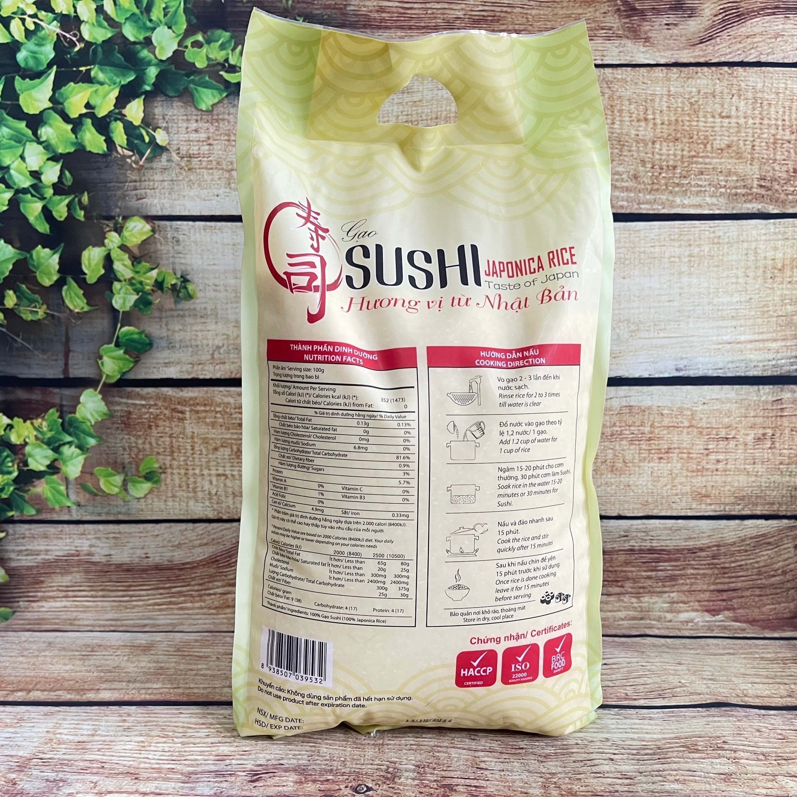 Gạo Nhật Sushi trồng từ giống Japonica, được dùng trong nhiều chuỗi nhà hàng Nhật. Cơm mềm, rất dẻo, ngọt đậm. Hạt gạo tròn đều, không tẩy trắng tạo mùi. Gạo đạt nhiều chứng nhận an toàn thực phẩm quốc tế. Chất lượng gạo ổn định, không đấu trộn