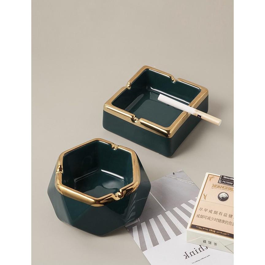 Gạt tàn gốm mạ vàng 18k cao cấp không thể thiếu trong không gian nhà bạn Kích thước: 15 x 15 x 15cm Mạ vàng 18k rất sang trọng và đẹp mắt Thiết kế nắp