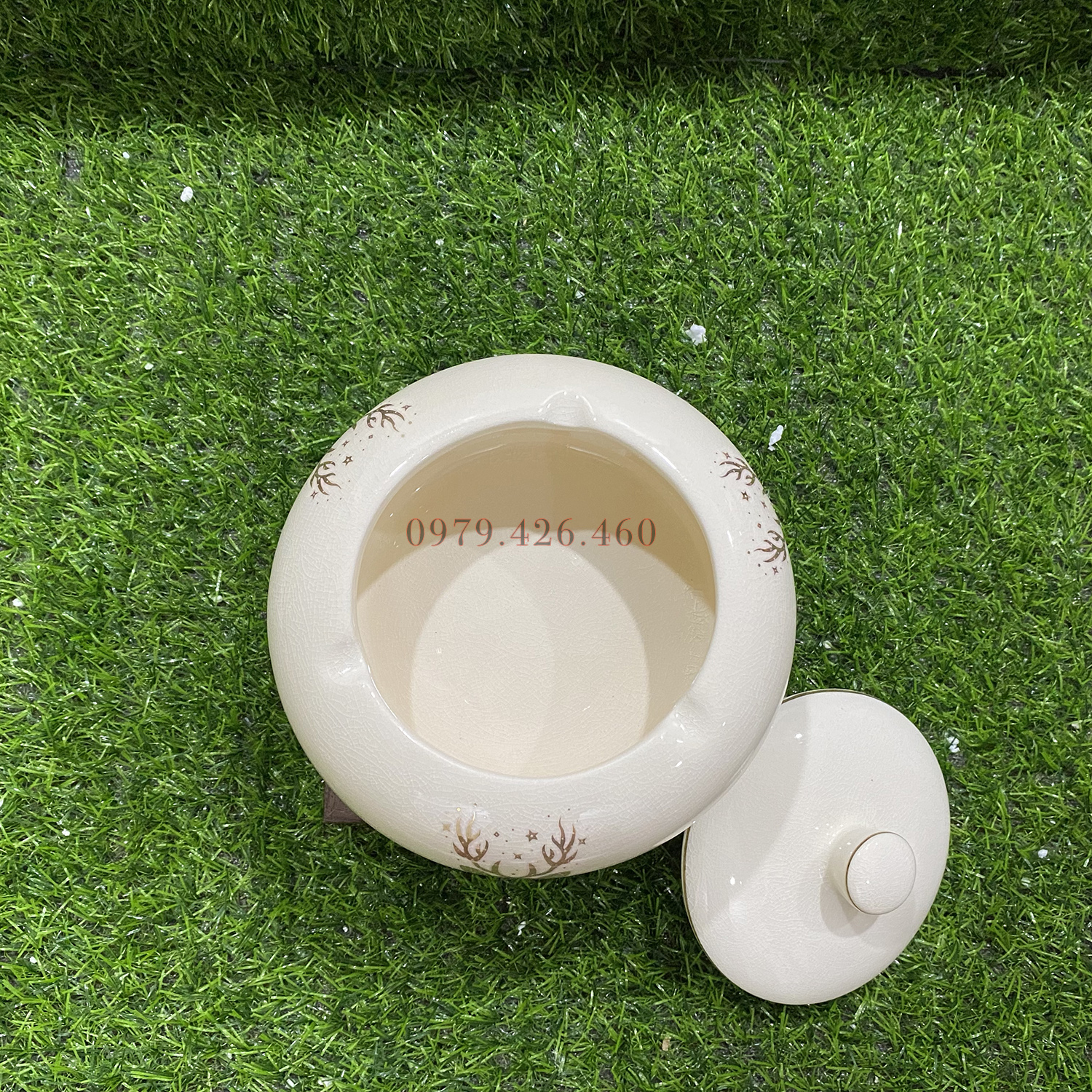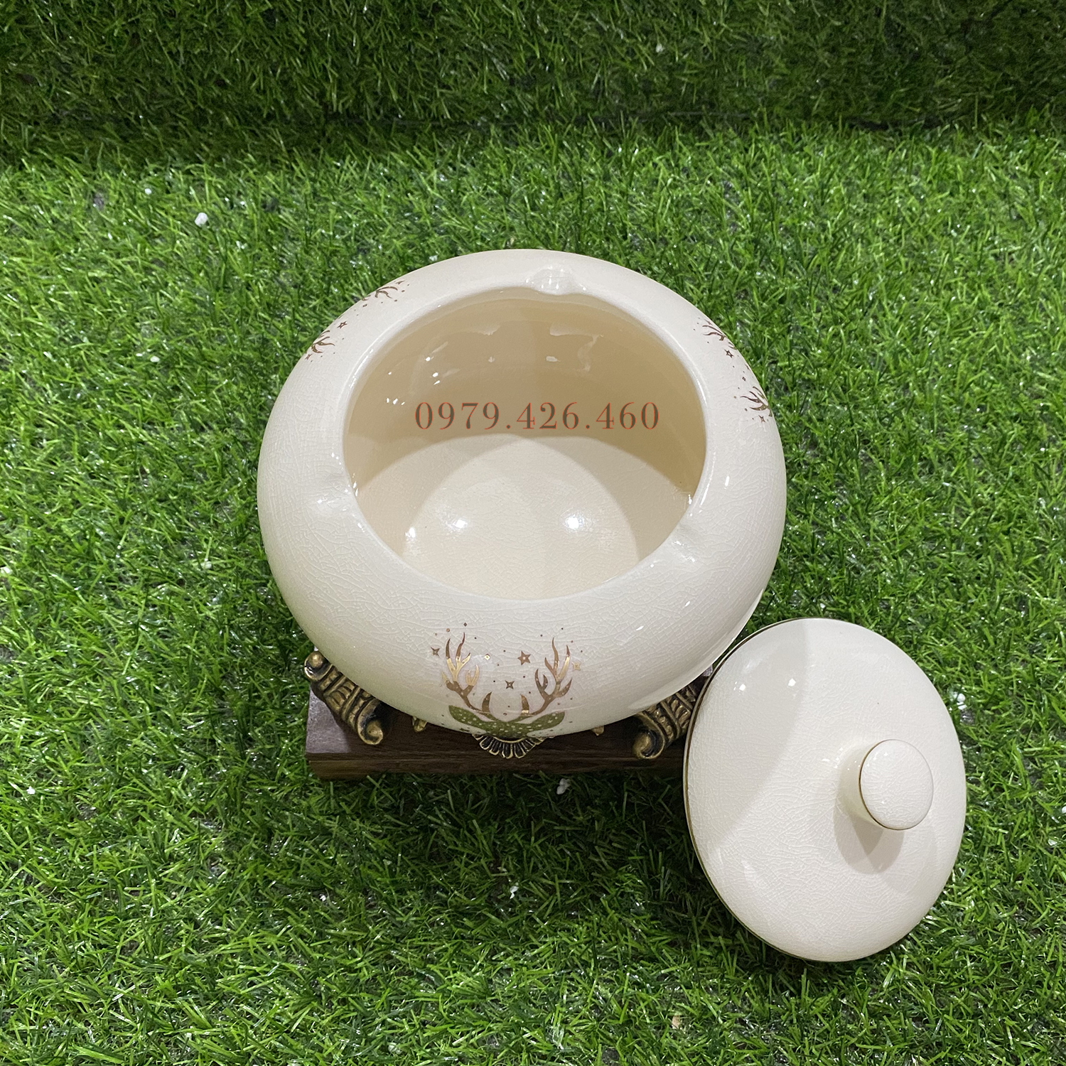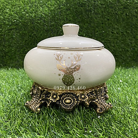 Gạt tàn gốm mạ vàng 18k cao cấp không thể thiếu trong không gian nhà bạn Kích thước: 15 x 15 x 15cm Mạ vàng 18k rất sang trọng và đẹp mắt Thiết kế nắp