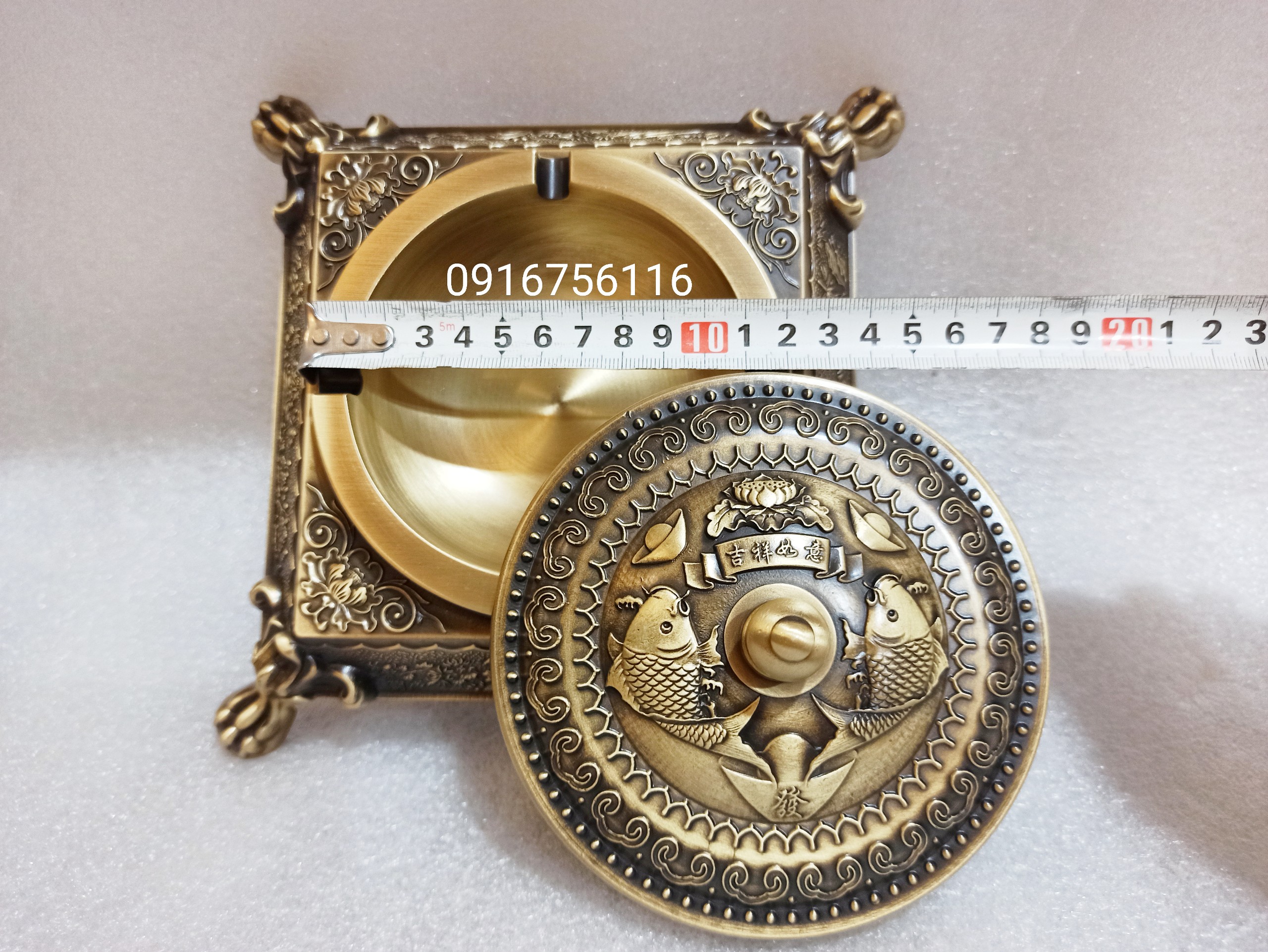 Gạt tàn thuốc lá bằng đồng hoa văn trống đồng đông sơn | Giá 1.800k - 0921400999