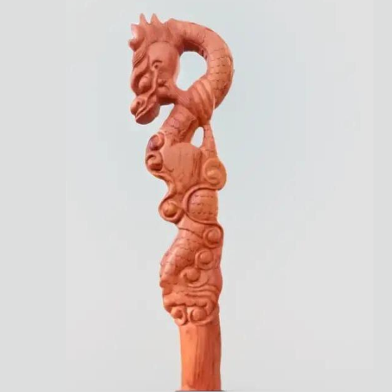 Gậy gỗ đầu rồng nguyên khối gỗ hương -kt 90 x 13