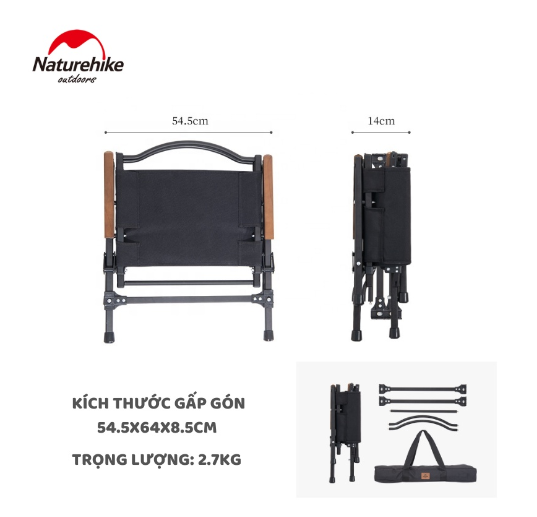 gọn có thể tháo rời NatureHike NH21JJ002 chất liệu khung ghế hợp kim nhôm được sơn đen, có thể tháo rời SIÊU GỌN, SIÊU NHẸ dễ dàng cho việc di chuyển, lưu trữ, phù hợp