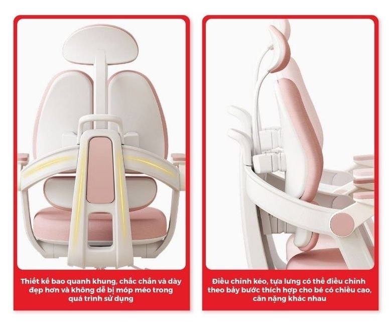 Ghế xoay học sinh cho bé gái màu hồng CE1036A-2M Lưng lưới nệm vải không tay nhỏ gọn tiết kiệm diện tích chân nhựa xoay màu trắng hcm Ghế học sinh nhập khẩu CE1036A-2M có