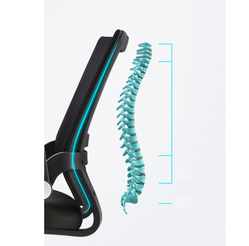 Tựa lưng có phần lõm nhẹ thẳng giúp cho điều chỉnh được cột sống tránh tình trạng đau nhức Mép ghế được vép theo hình giọt sương khuyết giúp cho người ngồi cảm thấy thoải