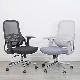 Thiết kế hiện đại: Lưng ghế dạng lưới màu xám thanh lịch, mang lại cảm giác thoáng mát và thoải mái khi ngồi lâu.