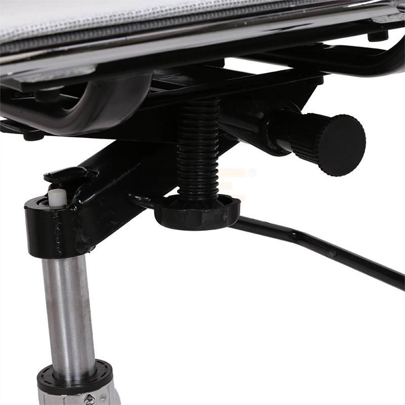 Chân ghế được làm bằng nhôm đúc hợp kim cao cấp, bền đẹp. Bộ bánh xe PU đúc giúp bạn dễ dàng xoay tròn và di chuyển. Cần nâng hạ độ cao rất nhẹ nhàng, dễ điều chỉnh cho người sử dụng nhờ bộ piston khí nén.