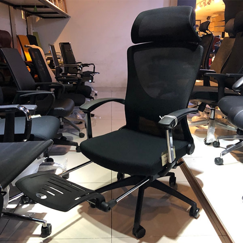 Mô tả: Ghế lưới lưng cao có tựa đầu bọc lưới, đệm mút bọc vải, chân gác nhựa, cơ chế ngả ra sau linh hoạt để nghỉ trưa tiện dụng.