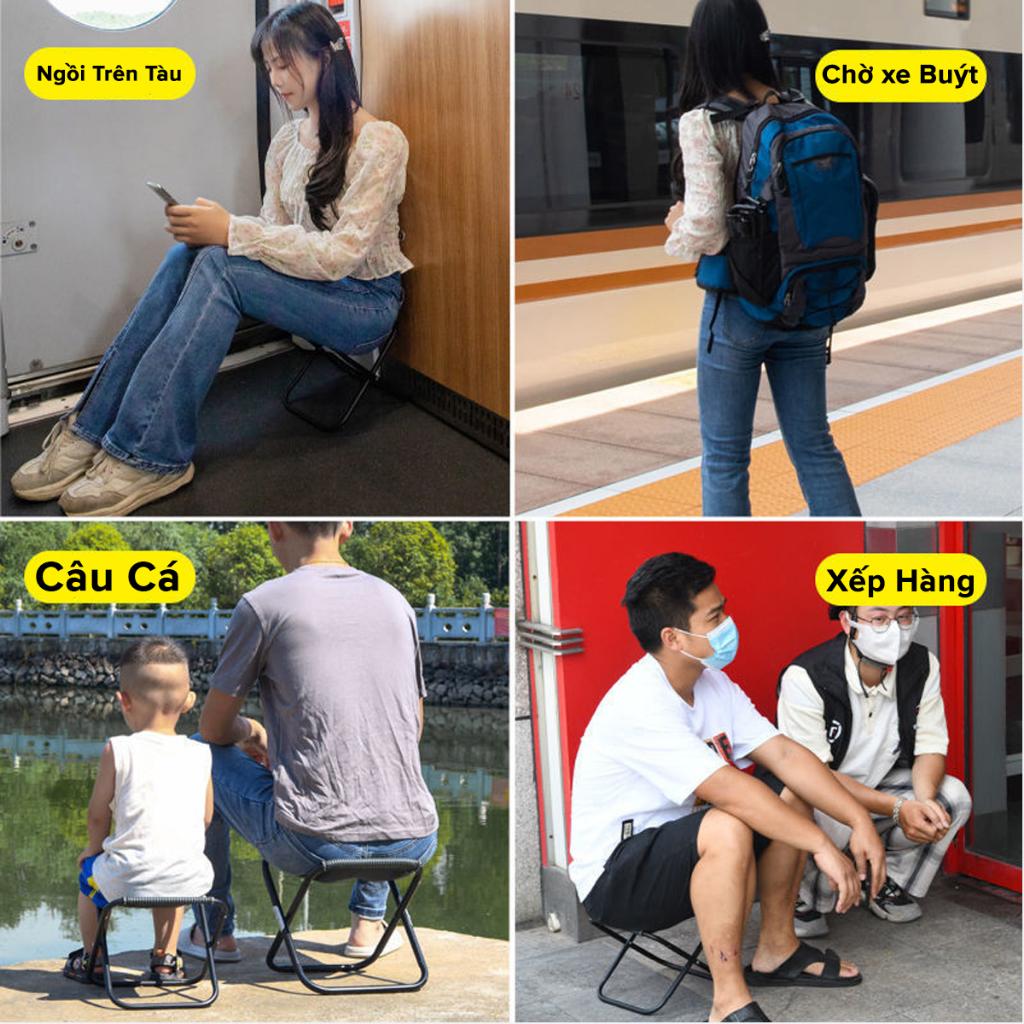 Ghế ngồi được thiết kế có thể bỏ túi, đi chơi, đi câu, du lịch, cắm trại, ngồi chờ tàu hỏa, xe buýt bus