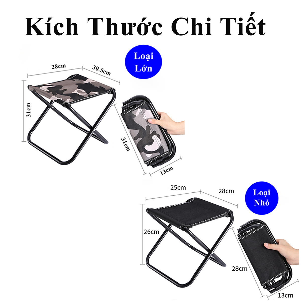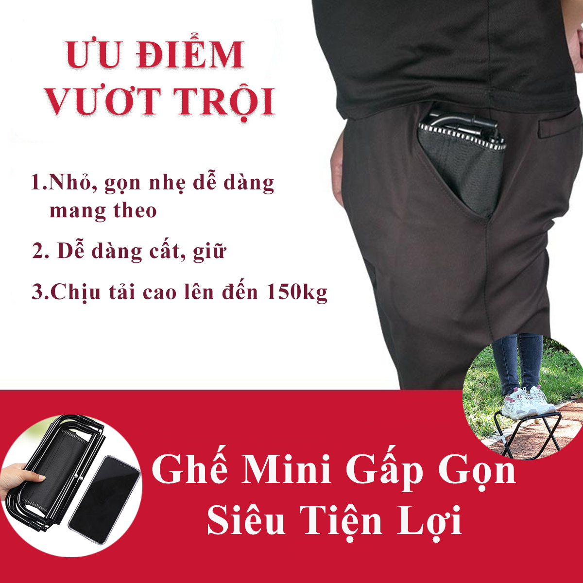 • Ghế có thể gấp gọn dễ dàng trong 3s và bỏ túi gọn gàng, di chuyển mang theo mọi lúc mọi nơi.