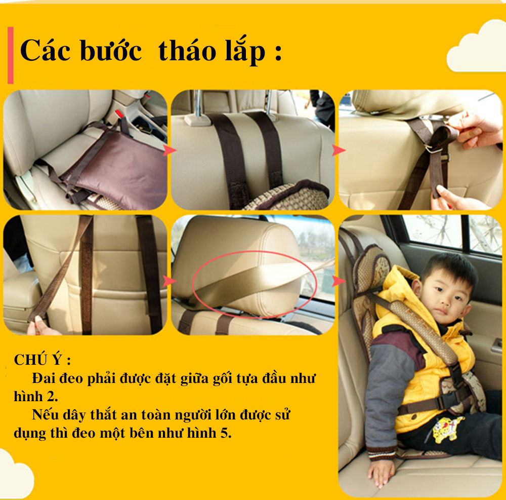 Đai Ghế An Toàn Cho Trẻ Em Khi Ngồi Trên Xe Ô Tô Thiết kế nhỏ gọn & di động không chiếm nhiều diện tích trong xe Lớp lót dày dặn, êm ái bằng bông
